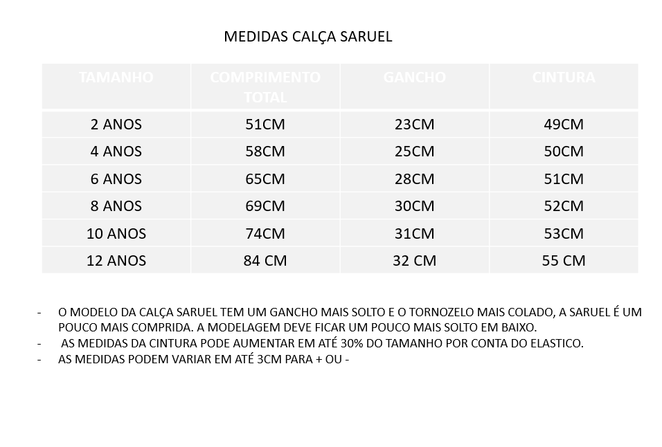 COMBO PROMOCIAL 3 Calças Infantil Saruel Molecotton é confeccionada em tecido com 97% algodão e 3% elastano, garantindo conforto e flexibilidade para as crianças. Seu design saruel apresenta gancho mais solto e pernas mais justas, proporcionando liberdade de movimento com um toque moderno. Ideal para o dia a dia, oferece maciez e durabilidade, perfeita para acompanhar a rotina das crianças com estilo e praticidade.